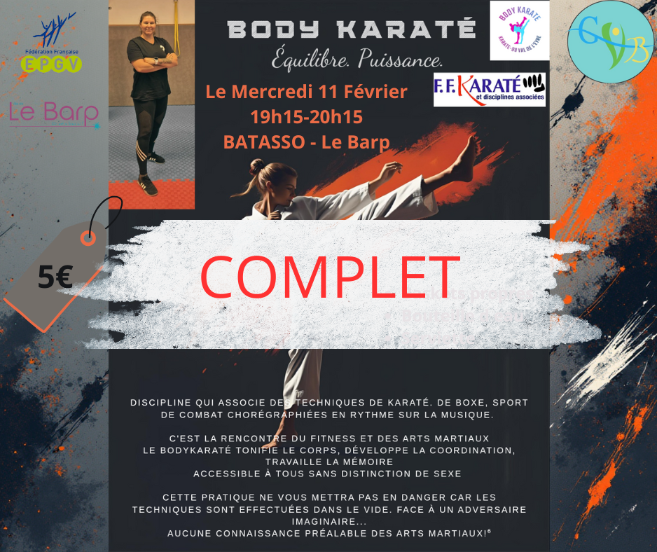 Mercredi 11/2/2026 de 19h15 à 20h15, nous vous proposons un stage de Body Karaté ouvert aux adhérents et non adhérents.